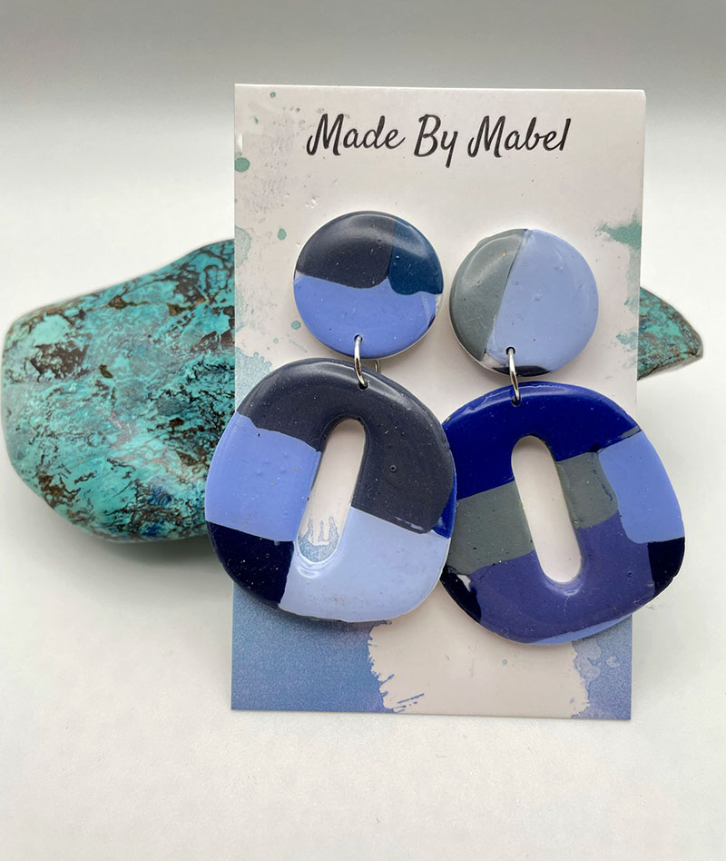 Tags: blue earrings, drop studs, handmade, made by mabel, polymer clay earrings